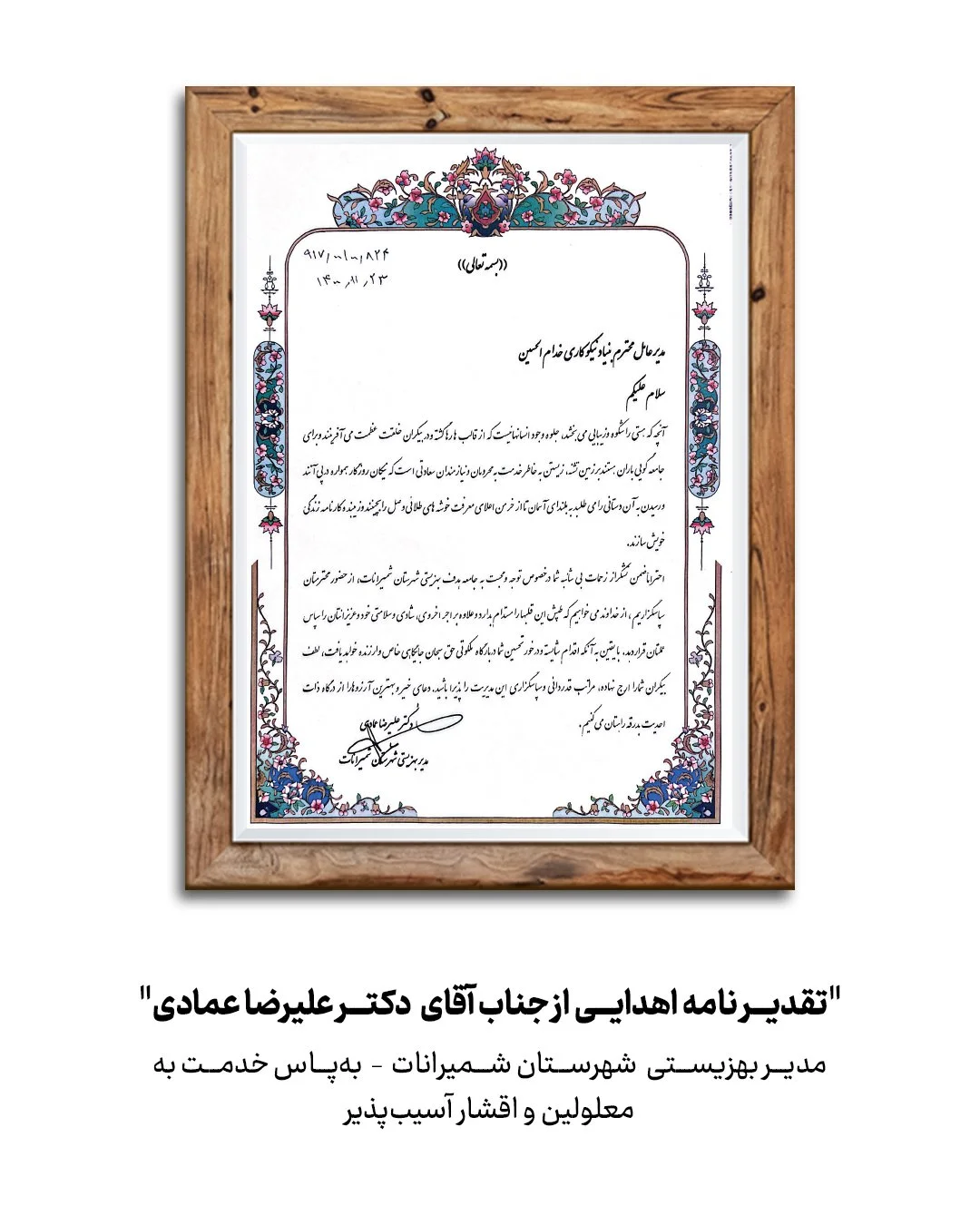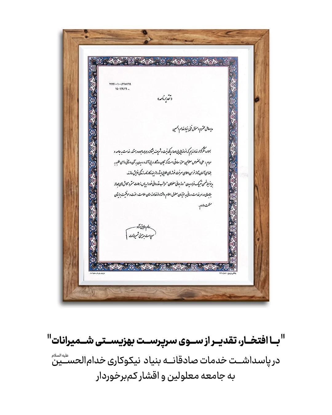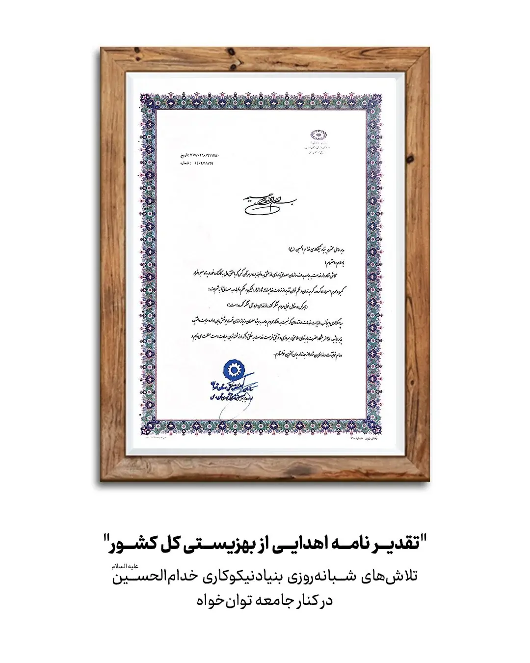 تقدیرنامه های خیریه خدام الحسین